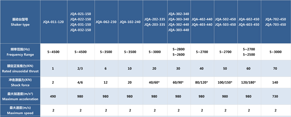 產品型號:JQA-302-340 品牌:劍 喬 用途:JQA系列3噸振動臺(振動測試系統)為定制款具有頻率寬、指標優異、可靠性高、占地面積小、移動方便、操作簡單等諸多優點,目前此系列有多種不同型號的振動臺可供選擇!咨詢熱線:13829135130