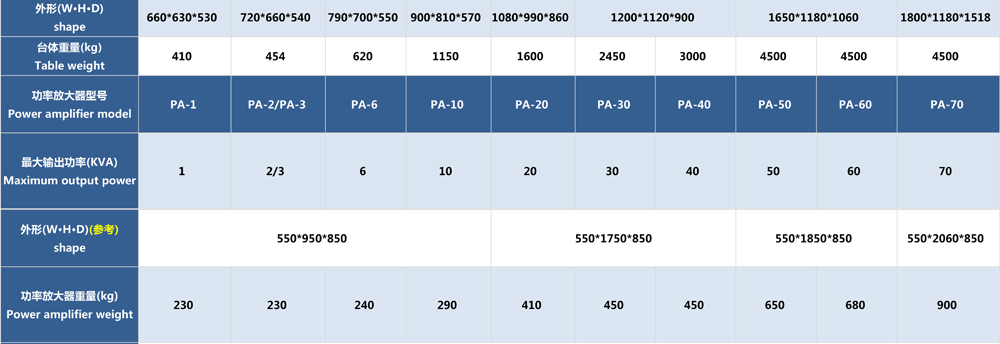 性能特點:●強制風冷 ●正弦激振力范圍: 1kN ~ 70kN●兩倍的正弦沖擊力(2噸以上可選三倍) ●輕質動圈,優化設計,耐振性能強●中心氣囊承載能力強,低頻性能好 ●可配置水平滑臺●風機冷卻效果好,噪音低 ●使用頻率可從1Hz開始●隨機與正弦激振力1:1 ●位移峰峰值最大可達100mm●耳軸氣囊隔震效果好 ●雙磁路設計,漏磁低,磁場均勻●正弦、隨機、沖擊等試驗功能 ●高效率、高可靠性功率放大器系統特點:◎一階共振頻率高、使用頻率寬優化的動圈骨架結構設計,特別是對傳統結構的動圈骨架傳力角板等薄弱環節進行增強設計,有效提高了傳力剛度;采用膠接與螺釘連接的復合固定繞線環筒和繞線環筒增強膠孔的新結構,增強了繞組的剛度。顯著提高了動圈的一階共振動頻率,超過了國際同類產品。◎動圈繞組可靠性高獨創的動圈繞組加強環的新結構和新工藝,顯著提高了動圈繞組工作在大推力、高加速度振動、沖擊和高溫環境中的耐振可靠性。◎風冷效率高創新的電動臺冷卻風道設計:改進了進風結構,上磁環用長槽型進風道取代圓孔型進風道;勵磁線圈采用蜂窩式風道、中磁環采用雙層風流式風道、下磁環采用斜楔型風道等新結構,顯著提高了冷卻效果。◎冷卻風機冷卻風機具有獨特的風道等結構設計,風機冷卻效果好,噪音低。◎水平和垂直試驗帶水平滑臺的電動振動臺可以用于水平和垂直試驗,兩個方向的切換方式簡單,翻轉方便。◎采用IGBT模塊功放采用性能可靠的MOSFET和IGBT模塊,具有很高的穩定性和可靠性。◎安全性能產品符合歐洲標準測試要求,在功放上裝有緊急停止開關,有效應對突發事件。符合美國UL和CE安全要求。**** 位移可選76mm 或100mm.?Displacement peak-to-peak value of 76mm or 100mm.**** 可定制不同直徑的動圈. Customize the diameter of armture is available.振動臺滿足以下試驗標準: